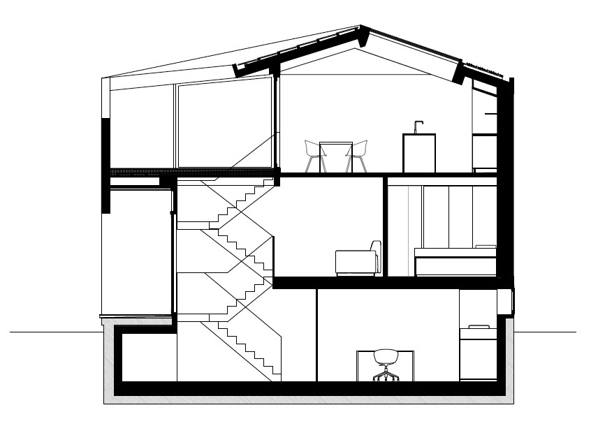 Interieurarchitect i29 wist de wensen van het gezin – kleine slaapkamers, ruimte om elkaar te kunnen ontlopen – in één poging te vertalen naar het juiste huis. Om aan de maximaal toegestane hoogte op deze locatie te voldoen, zijn de vloeren dun uitgevoerd en is de vorm van het gedraaide dak ontstaan. Juist dat dak is nu de eyecatcher van de ark; het is door de regeltjes dus mooier geworden.